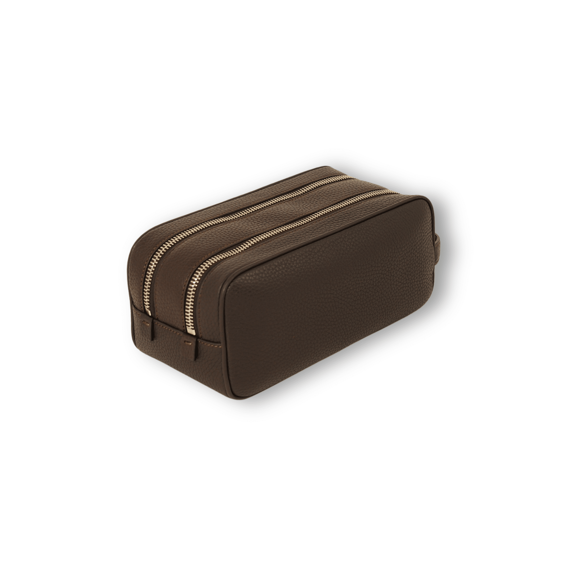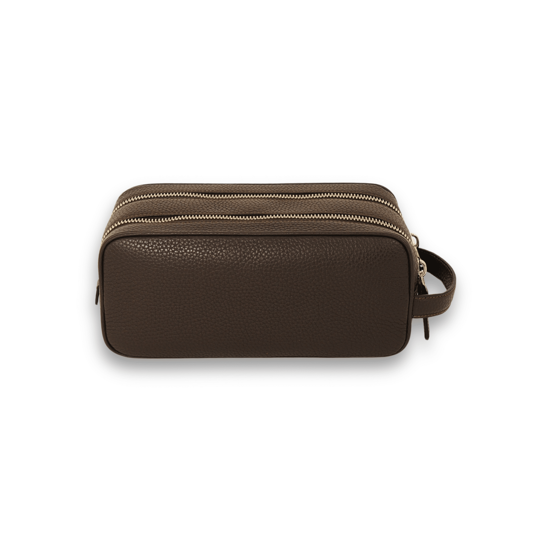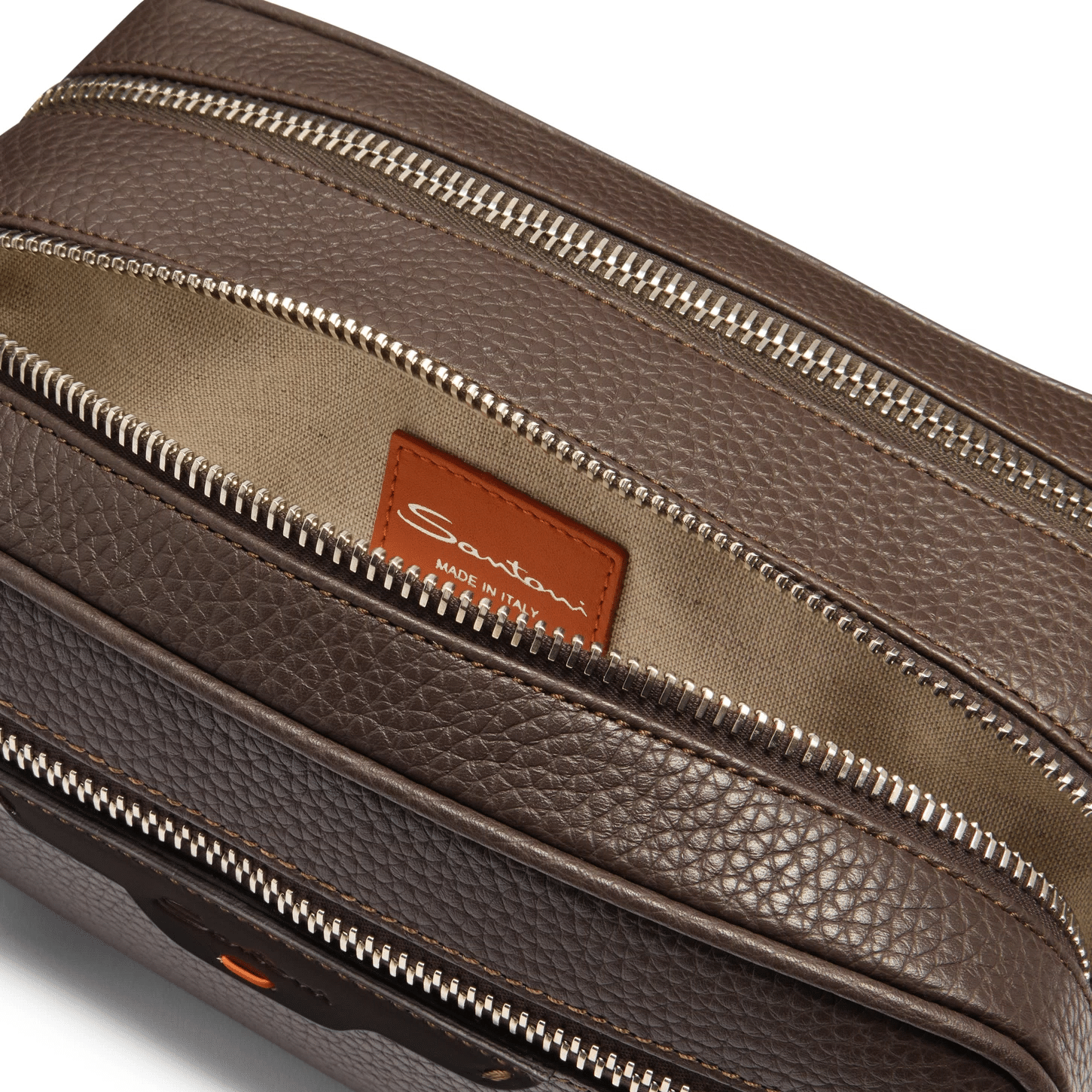 This elegant, essential Santoni beautycase is crafted from a refined combination of tumbled and smooth leather, the latter featuring Maison’s signature “velatura” finish. Two interior compartments and a front zip pocket make it easy to keep all your cosmetics organized. The bag also features a side handle for hanging.