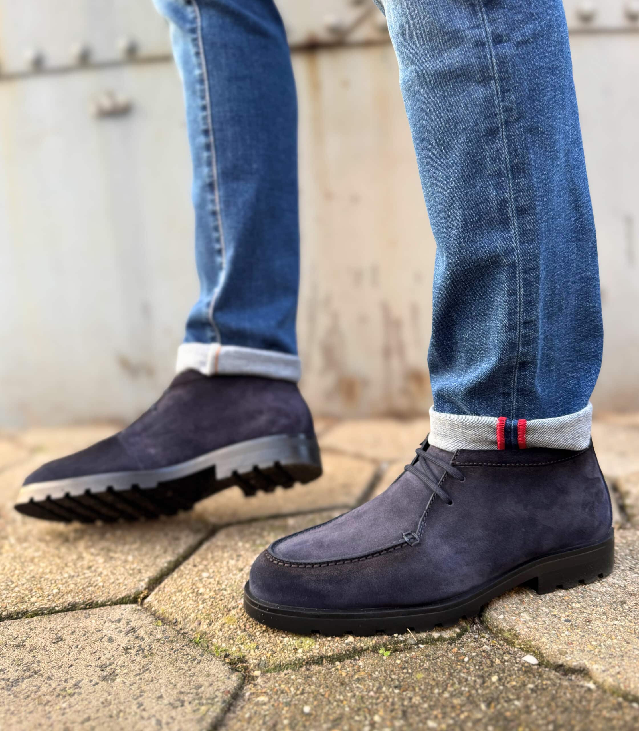 Santoni réinterprète le design intemporel de la desert boot avec une construction légère et des détails tendance, soigneusement sélectionnés pour souligner son côté contemporain. Cette version est confectionnée en daim et arbore une silhouette élégante et résistante, avec une épaisse semelle crantée en caoutchouc.